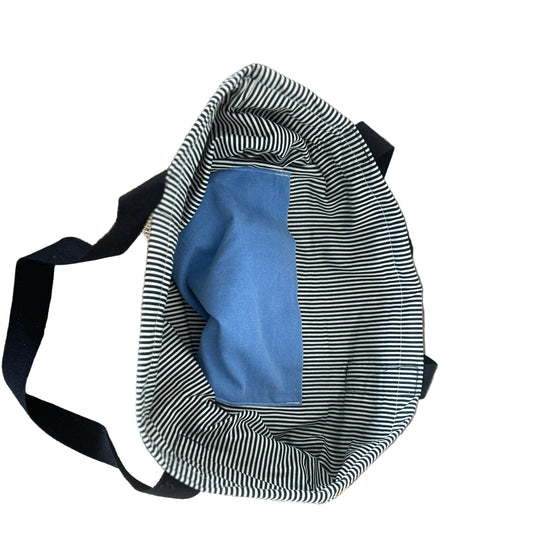 Reusable Shopping Bag - Black Carry Straps - Striped Lining